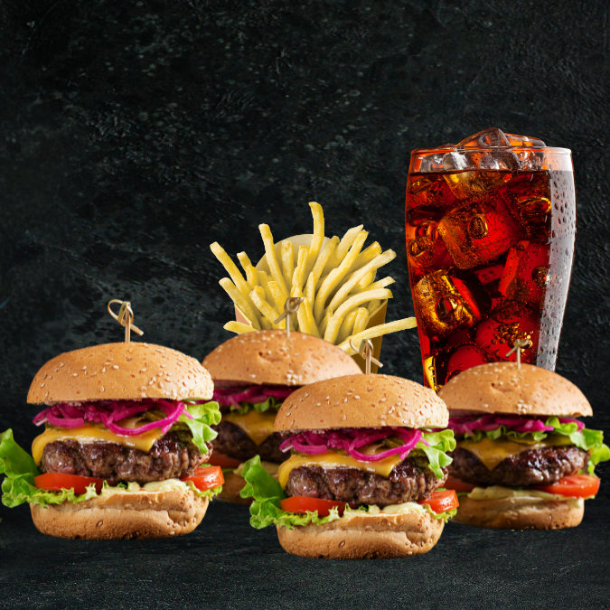 4 Burguer + 1 Coca 1 Lt + 1 Fritas Grande